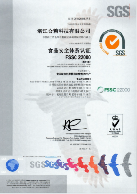 公司被評為“國家高新技術企業”,并有多個產品獲得“國內發明專利”,通過了FSSC22000食品安全體系認證,ISO14001環境管理體系,MUI HALAL認證,SKS KOSHER認證,ISO9001質量管理體系和ISO22000食品安全管理體系認證,并有多個產品通過了“歐洲REACH法規”注冊和“韓國REACH法規” 預注冊。